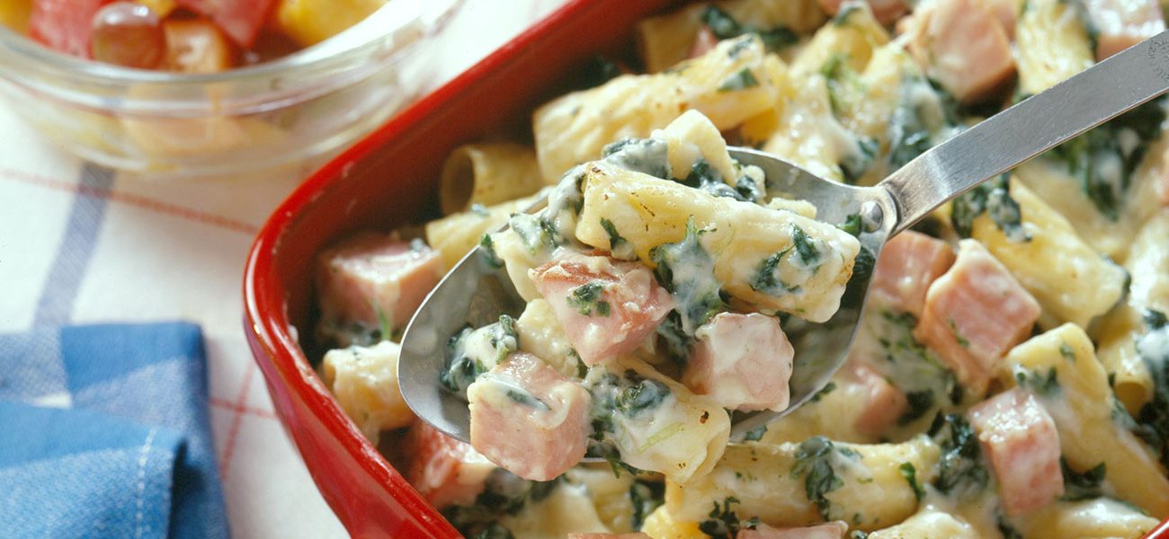 - Prepara la salsa blanca o salsa de campo; agrega el jamón, el queso, la mostaza, la espinaca y la salsa picante revolviendo. Vierte la salsa sobre la pasta, suavemente y mezclando bien.
