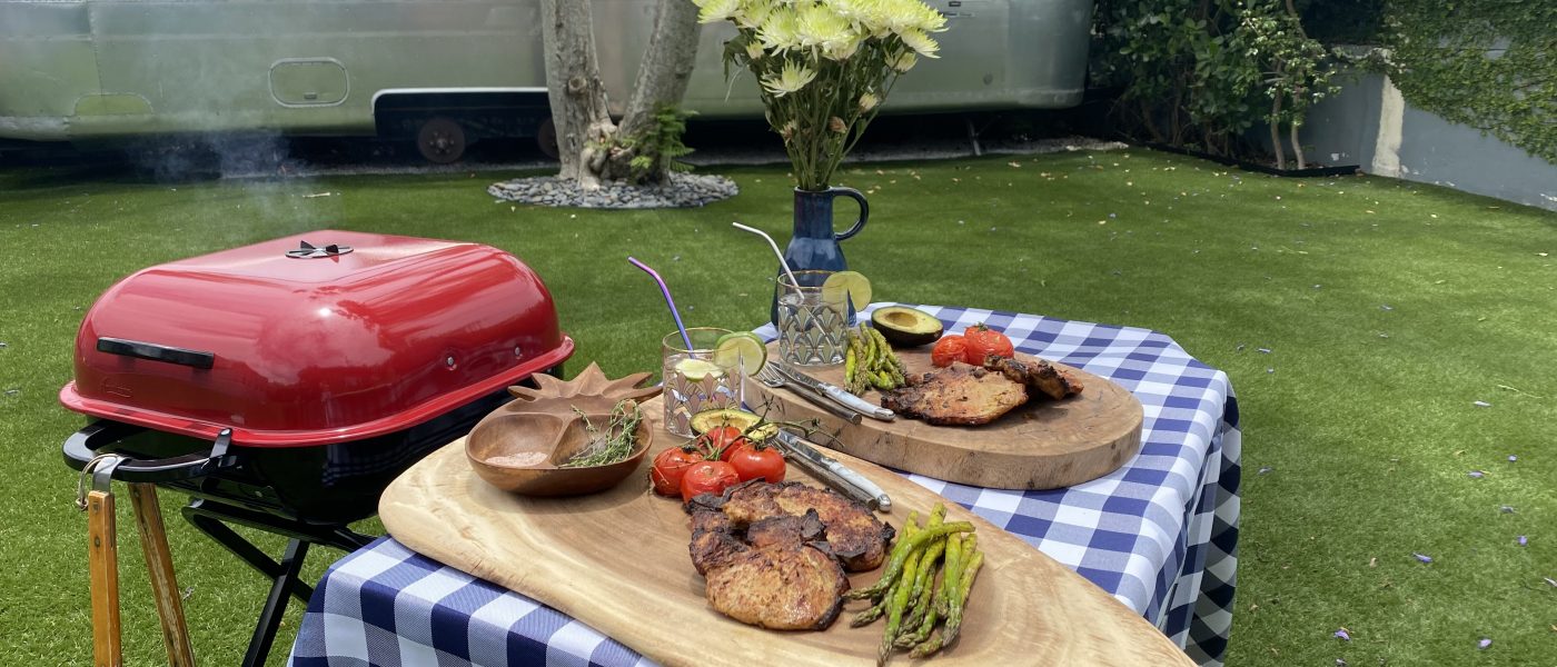 Marina la chuleta de cerdo desde la noche anterior usando aciete, salsa de soya, vinagre de cidra de manzana, jugo de limon, mostaza, sal, pimienta negra y dientes de ajo.