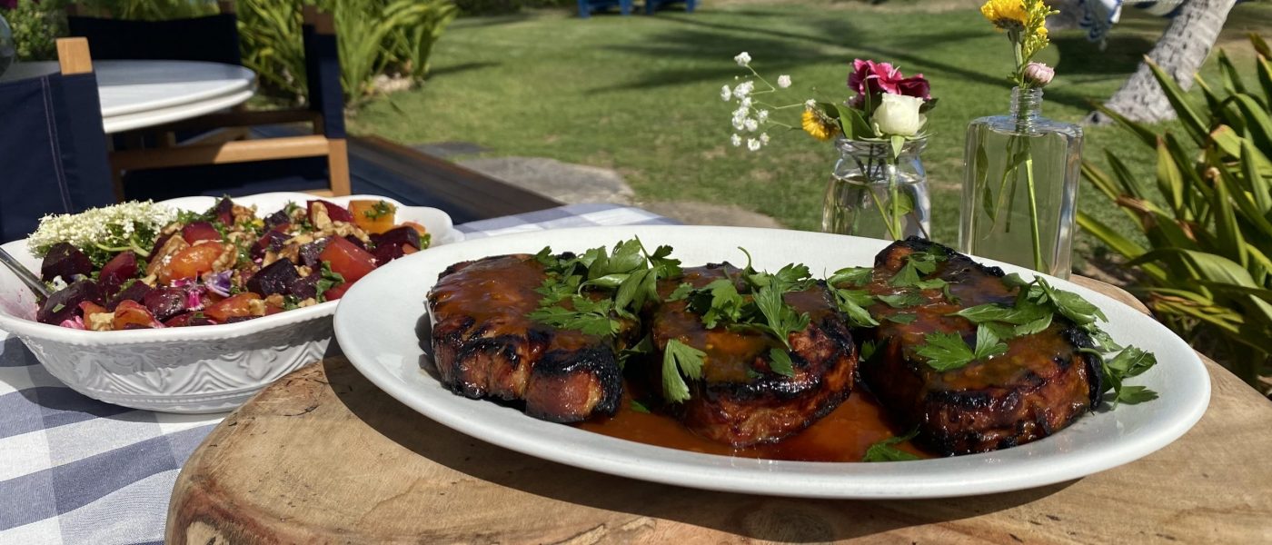 - Coloque las chuletas de cerdo a la parrilla y reserve la marinada para hacer la salsa.