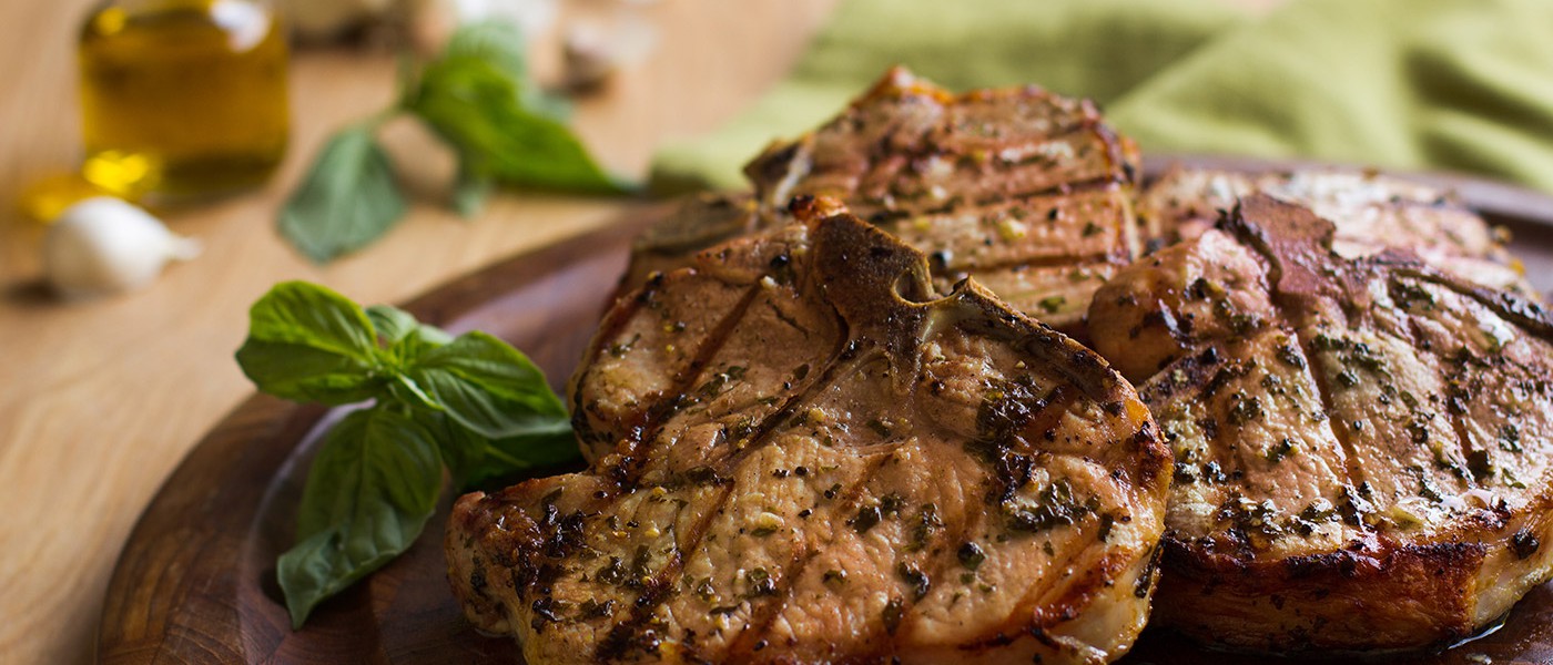 - Agrega las chuletas y cubre ambos lados con la mezcla de albahaca .