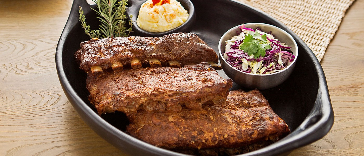Calienta el horno a 350° F y corta las costillas al tamaño de las porciones para servir.