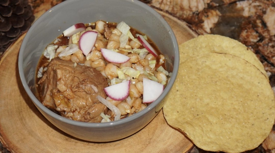 - Cuando la carne de cerdo esté blanda, agrega el maíz molido y hierve 15 minutos más. Agrega los chiles anchos y licúa.