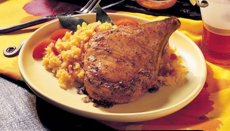 Calienta el aceite en una sartén y cocina el cerdo hasta que esté ligeramente dorado y alcance una temperatura interna de 160 °F. Reposa 3 minutos. Sazona con sal.