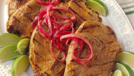 Estos trocitos de carne, marinados en cítricos, especias y ajo, son tradicionalmente preparados con espaldilla de cerdo y se frien. Son muy parecidos a las “carnitas”, que se hacen cocer a fuego lento y forman parte de los menus mexicanos. Estos suculentos trocitos de carne de cerdo son típicos en Puerto Rico, Cuba y también en las cocinas de los países de América Central. Esta version se prepara con lomo de cerdo, una carne magra sin hueso y fácil de conseguir. Estos cubitos de carne de cerdo bien doraditos, se sirven tradicionalmente con platanos machos/fritos y machacados (conocidos como fufu en Cuba o como mofango en Puerto Rico). Sin embargo, para una comida rápida y fácil, sirva las Masitas de Cerdo con un aromático plato de arroz “pilaf”, pimientos y cebollas sofritos, una salsa hecha en casa o comprada y tortillas calientes.