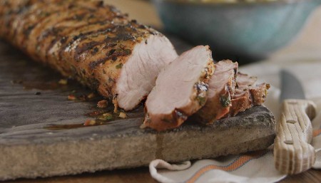 Coloca en la parrilla y tapa la parrilla. Cocina, volteándolo ocasionalmente durante 20-27 minutos hasta que esté dorado y cocido según tu preferencia, o el termómetro de lectura rápida insertado en el centro de la carne de cerdo lea entre 145° y 160° F.