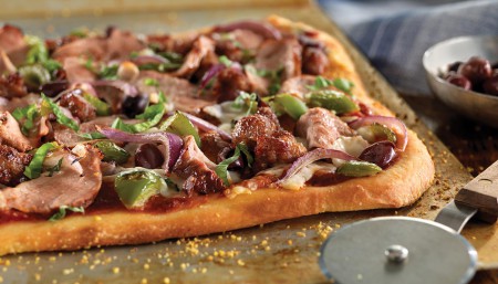 Coloca encima la carne de cerdo al pastor (alrededor de 4-6 oz).