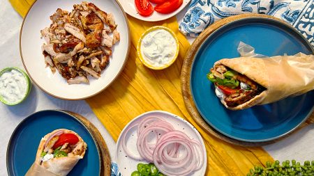 Coloca la carne de cerdo marinada al pastor en una sola capa.