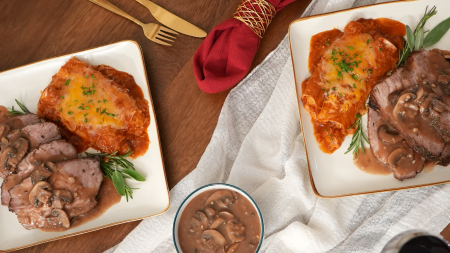 Pork Marsala con Enchiladas de Queso