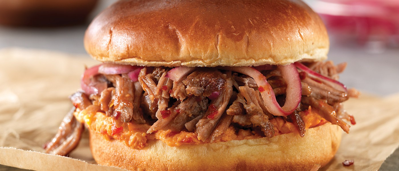 Con esta receta también puedes hacer unos estupendos burritos o taquitos-esparce la mezcla de queso apimentado sobre tortillas grandes de harina, cúbrelas con el cerdo y las cebollas encurtidas, y enróllalas como burritos. Para acompañar, sirve ensalada de repollo, frijoles asados o papas fritas.