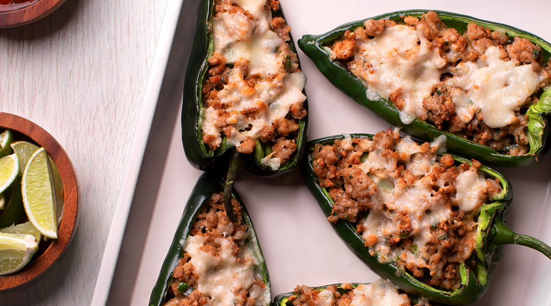 -Transfiere los chiles a una bandeja para hornear y hornea hasta que el queso esté derretido y burbujeante, aproximadamente 25 minutos.