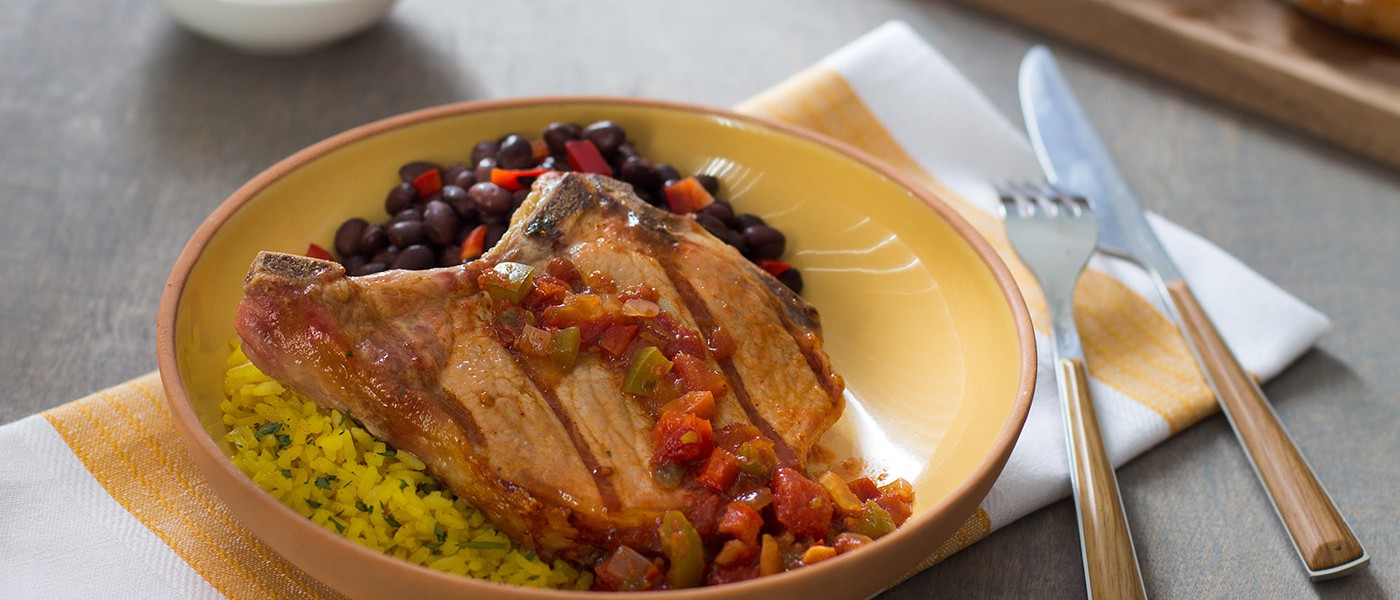 Los sabores caribeños y la cantidad generosa de salsa en este plato invitan a servirlo con mucho arroz (preferiblemente arroz amarillo) y frijoles negros. Si deseas, sírvelo con tortillas de harina para saborear cada gota de la salsa.