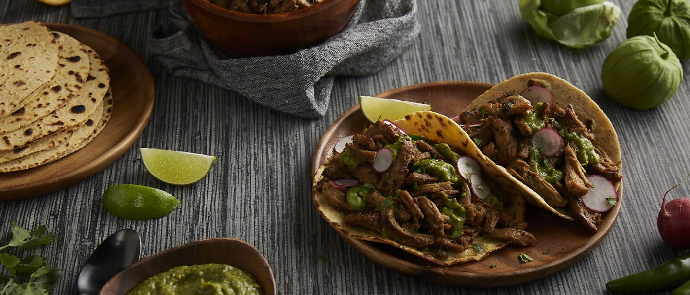 Comunes en los hogares mexicanos, estos tacos de carnitas crujientes y de cocción lenta son perfectos para unos tacos caseros. Dale sabor con una auténtica salsa de tomatillo.