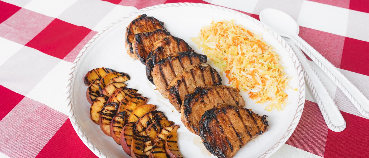 Puedes servirla acompañada por una ensalada de col o melocotones a la parrilla.